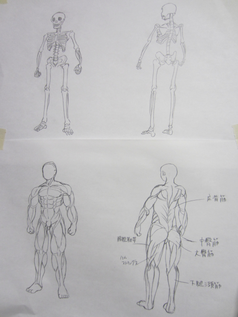 さらにもう一歩、ネットで人間の筋肉を検索して模写します